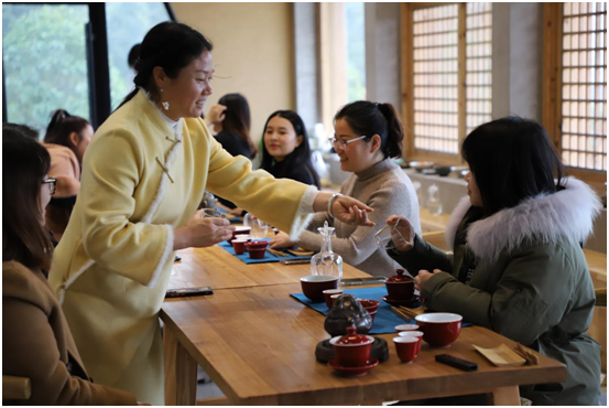 正值“三八”国际劳动妇女节之际,赫山区商务局在周立波故居清溪民宿开展“学茶道、品人生、做优雅女性”为主题的欢庆“三八”妇女节活动,邀请唐宋轩文化创始人宋老师为局机关13名女干职工授课,讲解茶学知识,让大家领略中国传统文化,感受茶道魅力。 活动中,在茶艺师的指导下,大家欢聚一堂体验学习茶道,随后大家纷纷上手,烫杯温壶、洗茶冲泡、分杯奉茶,闻香品茗,现场欢声阵阵。 通过此次活动,不仅在学习茶道的过程中接受了茶艺文化的熏陶,增强了团队凝聚力,也感悟了茶艺人生,大家伴随着怡人的茶清香在学习茶艺文化中度过了有意义的“三八”妇女节。