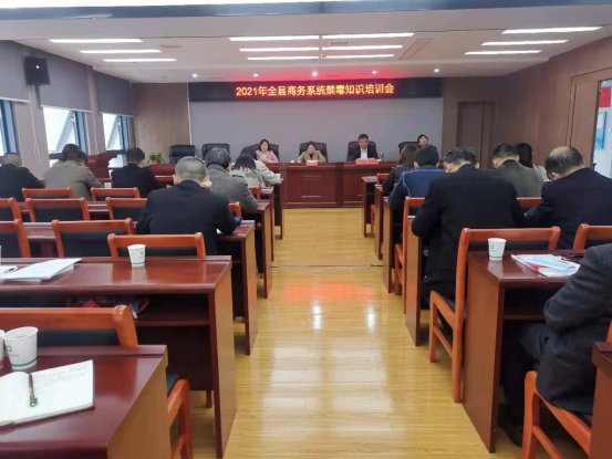 4月12日,安化县商务局举办2021年商务系统禁毒知识培训会,会议由局长刘畅术主持,局机关干职工、二级机构及商务系统各下辖企业负责人参会。