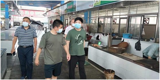 为进一步深入贯彻落实中央和我省新冠肺炎疫情防控有关工作要求,严格落实疫情防控措施,杜绝疫情防控工作中存在的漏洞,确保我市农(集)贸市场、大型超市等疫情防控措施和市场保供工作落实到位,8月1日上午,益阳市商务局副局长曾文彬带领市场建设科长莫立明、市场运行科长杨永志一行4人来沅督查疫情防控和市场保供工作。 曾文彬详细听取了局长王建宏、副局长杨定新、范文彪就沅江市城区农(集)贸市场、各大超市疫情防控具体举措和市场保供工作汇报。据了解,城区所有农贸市场管理人员及从业人员都已完成疫苗接种和核酸检测,各大超市从业人员疫苗接种都已完成。自7月25日至今,商务局每天安排3-4名工作人员在城区农贸市场、各大超市进行值守。同时,为稳定商贸市场运行,我局不断细化措施,加强对生活必需品市场供应情况每日监测,与发改、农业等相关部门信息互通,协同做好重点生活必需品物资保障工作,确保米面、粮油等生活必需品保价稳供,保障社会安定。 随后,曾文彬一行对城区农贸市场、超市疫情防控、物资储备以及近期销售等有关情况进行督查。每到一处,曾文彬仔细查阅相关资料台账,详细询问消毒液、口罩等疫情防控应急物资储备情况和生活必需品物资保障工作;认真检查出入口防疫措施落实情况、督促消费者佩戴口罩等疫情防控措施。