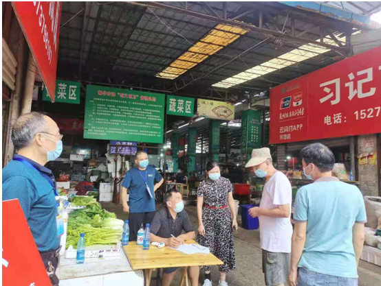 疫情就是命令,防控就是责任。新一轮疫情以来,县商务局纪检监察同志深入疫情防控第一线,既当监督员又当志愿者、宣传员,不分昼夜地奋战在抗击疫情第一线,全力筑牢疫情防控免疫屏障。 当好执纪“监督员”。督查组采用“四不两直”的方式深入县城振华蔬菜市场、桃花南路农贸市场、七星菜市场进行常态化疫情防控督查,重点对值班值守、口罩佩戴、体温测量、“三码联查”、信息登记、卫生消毒、市场秩序、防疫物资等进行现场查验。截至8月15日,共开展不定时督查200余次,督促立行整改问题20个,运用第一种意识形态谈话12人,上报黄码人员4名,红码人员2名。