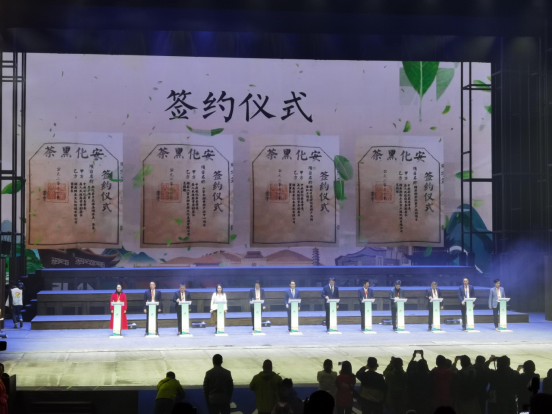10月22日,第五届湖南﹒安化黑茶文化节在安化天下黑茶大剧院开幕。在开幕式上举行了盛大的招商引资项目集中签约仪式。中国水利水电第八工程局有限公司、安徽海螺水泥股份有限公司等14家公司的负责人分别上台签约。本次共集中签约14个招商项目,主要涉及乡村振兴茶旅产业提升、现代农业全产业链、平台建设与品牌运营、品牌教育、新材料、新能源等领域,总投资额102.408亿元。建成后将推动安化县产业转型,形成产业集群,将生态资源优势转化成经济发展优势,为巩固脱贫攻坚成果,大力推进乡村振兴提供强有力的支撑。为建设“开放、创新、秀美、富饶、幸福”新安化,奋力谱写社会主义现代化新安化“山乡巨变”新篇章将发挥重要作用。