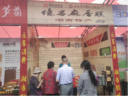 6月2日,沅江市商务局组织“億昌”食品、芦小妹、湘龙绿色食品等7家企业携中华老字号“億昌”麻香糕、沅江芦笋、芦菇、四季红腐乳等70余种沅江特色品牌产品参加益阳市乡村振兴农特产品交易展销大会。
