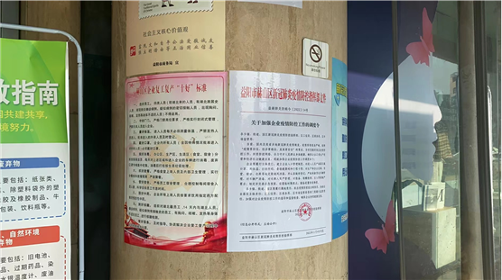 调度令就进一步做好全区企业和农贸市场疫情防控工作,从加强组织领导、公共区域清洁与消毒、重点人员和场所防控等方面再次提出具体要求。商务局积极落实,广泛宣传,印制了《调度令》及文件的张贴版,要求点位干部及时发放给企业、市场负责人,并与《农贸市场、商场、超市等场所新冠肺炎疫情防控要求》一并张贴,旨在通过加强宣传,督促企业高度重视疫情防控工作,主动担负起疫情防控主体责任,切实做好常态化疫情防控工作。 截至目前,我局共张贴《调度令》80余张。 |