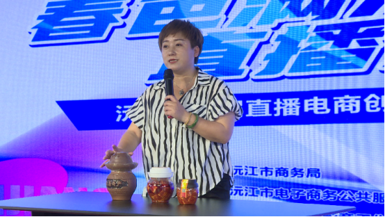 在比赛现场,每位主播化身为选手,将台下的评委与观众想象成直播间的顾客,卖力地介绍着自己手中的沅江特产,在展现自己的带货能力的同时,也将家乡的美味带给大家。