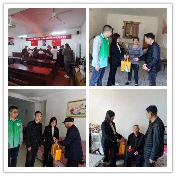 会后开展了“义诊惠民”和“献爱心”志愿服务活动。现场组织医务志愿者热情为村上群众量血压、测血糖,检查身体,针对群众身体情况给予健康指导,解答常见病、多发病的预防诊治问题,科普疫情防控知识和中医知识等,并为有需要的群众进行中医护理非药物治疗,包含艾灸、膏贴、针灸和拔火罐等。另外还组织党员和志愿者们进村入户慰问了孤寡老人和遭遇重创的困难群众,送去了慰问金和蛋白粉等保健品,鼓励他们热爱生活,重视健康,受慰问群众激动地握住我们的手说:“感谢党,感谢政府,感谢爱心企业!”通过为广大群众提供健康服务和走访慰问,让他们深切感受到党的温暖,进一步提升了群众的幸福感、获得感和安全感。