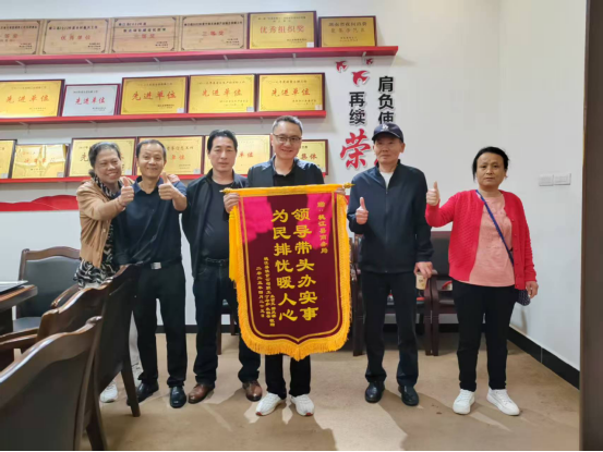 4月25日上午,桃江县饮食公司家属及职工代表十余人敲锣打鼓来到县商务局,送上一面印有“为民排忧暖人心,领导带头办实事”的锦旗,感谢其解决困扰居民十余年的垃圾堆积难题。 饮食公司家属楼四楼公共平台因多年的遗留问题,长期堆积大量生活垃圾与建筑废料,既影响环境卫生,又存在安全隐患。多年来居民多次反映,却因产权复杂、责任不清等问题,未能彻底解决。 县商务局工作人员走访调研时获悉情况,主动对接社区、物业及相关部门,协调清运车辆与人员,并组织党员干部带头清理。历经三天奋战,共清运8车垃圾,将十年“垃圾山”清零,还居民干净安全居住环境。 居民刘大爷激动地说:“垃圾堆了十几年,夏天臭气熏天,冬天担心火灾,现在终于干净了,感谢商务局的同志们!”商务局相关负责人表示,群众事无小事,今后将继续以“为民办实事”为抓手,切实解决群众急难愁盼,提升群众获得感与幸福感。