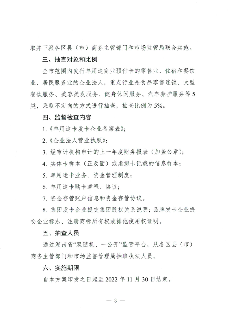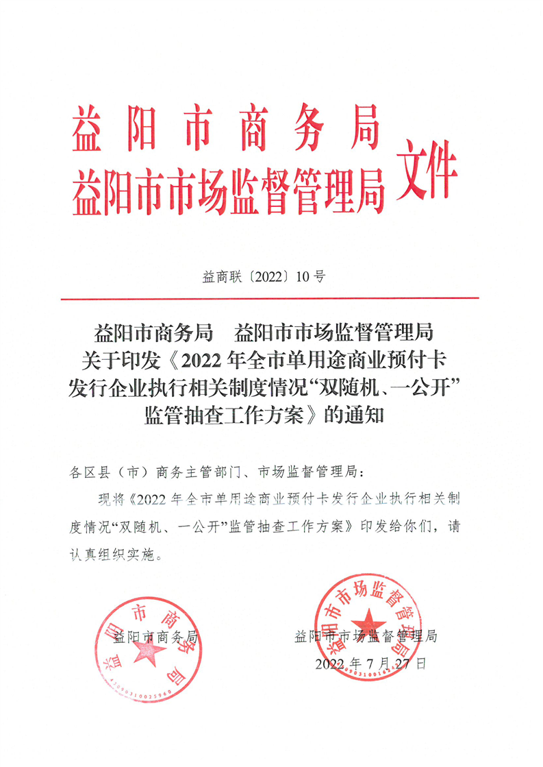 2022年全市单用途商业预付卡发行企业执行相关制度情况“双随机、一公开”监管抽查工作方案 |
