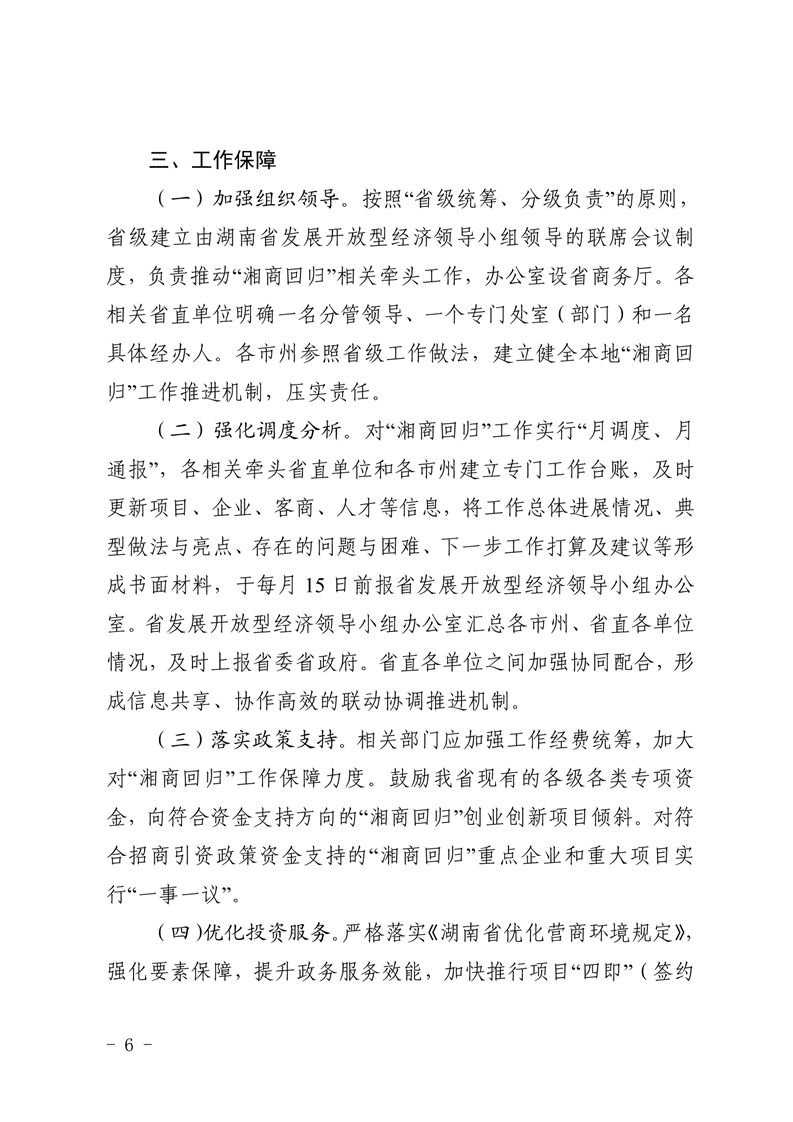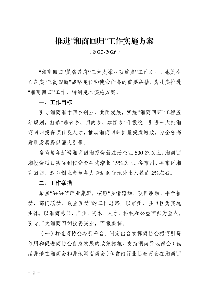 关于印发《推进“湘商回归”工作实施方案(2022-2026)》的通知 |