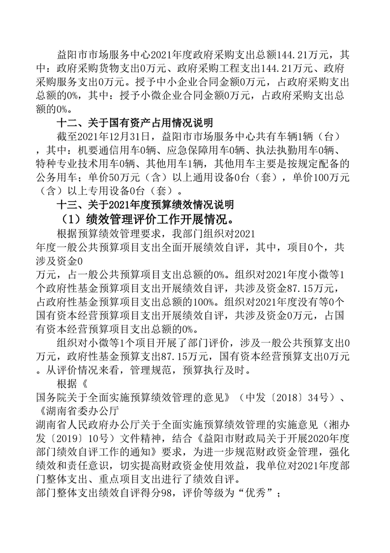 益阳市市场服务中心_2021年部门决算公开说明 |