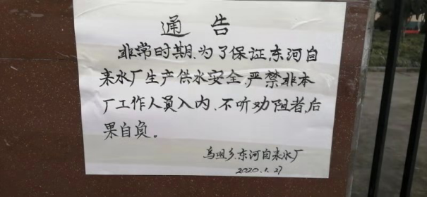各区县市水利部门严格按照市局要求,迅速组织各乡镇水厂管理人员对水厂加强专人值守,禁止无关人员进出水源保护区和厂区,定期对厂区各区域进行无死角消毒、检查。加强对水源地的巡查次数,加密水质检测次数,及时调配更换故障深井水泵。同时要求管网维修人员在做好自身防护的情况下对管网进行及时的养护维修,确保疫情防控期间人民群众能喝上干净卫生的放心水。