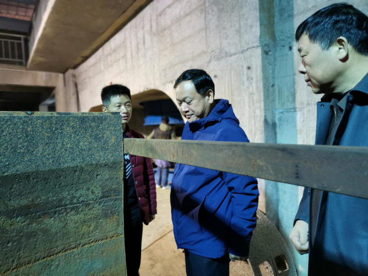在大东口电排站冬修现场,丁菊连、罗伟运一行先后实地察看进水口、连接层、水泵层、中控室等地。在水泵层,丁菊连听取了明山电排管理站站长江伟关于今年机组开机运行电费、水费使用情况的工作汇报,并仔细察看了叶片受损及机组泵壳气蚀的状况,了解到冬季维修存在的问题后,当即表示要加大支持力度,尽快解决问题,确保来年防汛开机安全无虞。