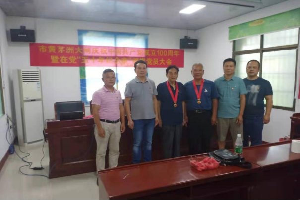 6月30日,益阳市黄茅洲大闸塞阳河管理所举行“光荣在党50年纪念章颁发仪式,向老党员传递党的关怀和温暖,激励引导年轻党员传承红色基因。
