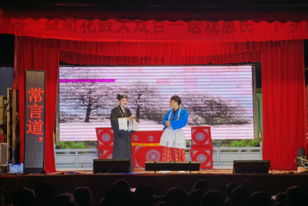 12月4日,“2021年益阳花鼓大戏台—送戏惠民下乡巡演”在安化县小淹镇白沙溪社区演出,为社区居民带来一场精彩的戏曲演出。下午6点,演职人员在新建成的社区文化舞台前,忙着安装设备、调试灯光、描眉化妆、穿戴戏服,为马上开始的演出做精心的准备。而舞台下200多名群众早早就前来观看演出,现场的群众熙熙攘攘、欢聚一堂。当天演出的节目是益阳市赫山区梨园颂花鼓戏剧团的11位演职人员所表演的传统剧目《福寿图》。戏曲演员们基本功扎实、技艺精湛,惟妙惟肖的表演让人们一个个看得兴高采烈,赞不绝口,台下不时传出叫好声。整场演出持续2个多小时,精彩的戏曲表演为社区群众带来了一场“文艺大餐”,不但让群众在家门口过了一把“戏瘾”,而且内容积极向上,弘扬了正能量、歌颂了真善美,有力教育引导了社区群众革除陈规陋习,弘扬公序良俗,培育乡风文明。