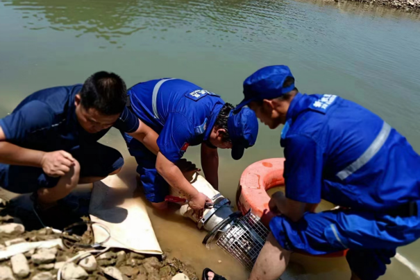 图二:市水利防汛抗旱服务队工作人员正在引水抗旱