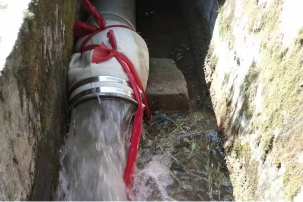 图三:市水利防汛抗旱服务队工作人员成功将水引入桃江县浮邱山乡黄南冲村灌溉渠道