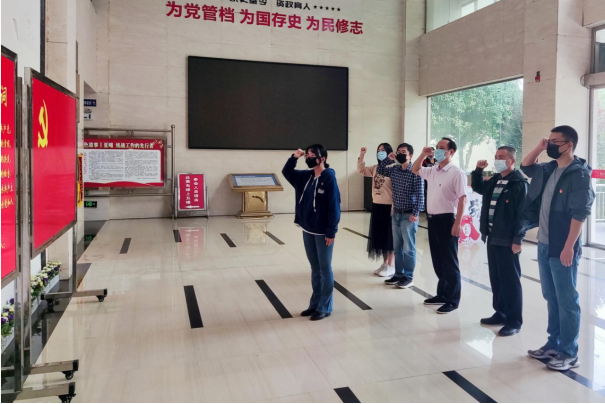 全体党员首先来到桃江县档案馆,通过重温入党誓词,参观历史展厅,聆听革命故事,深刻领悟“两个确立”的决定性意义,增强“四个意识”、坚定“四个自信”、做到“两个维护”,全面贯彻习近平新时代中国特色社会主义思想。