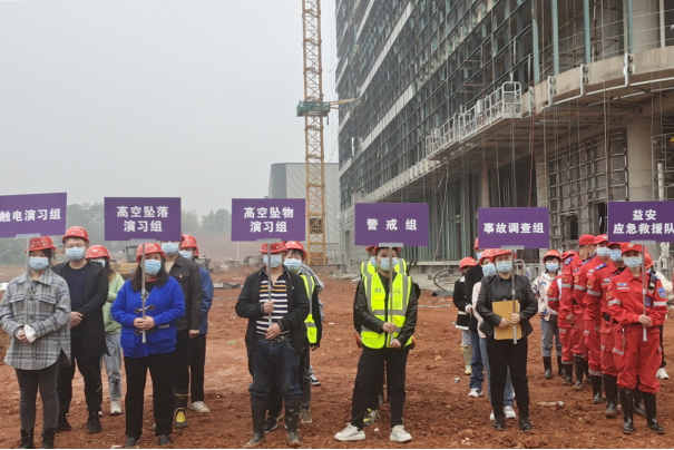 本次安全生产应急救援演习地点为益阳朝阳保税物流中心(B型)阳家河灌溉渠改道工程施工现场,演习内容分为现场触电应急救援、高空坠物应急救援、高空坠落应急救援、火灾事故应急演练。演练开始后,事故演习组、警戒组、应急救援队、事故调查组等人员迅速响应,第一时间开展人员疏散、现场秩序维护、伤员救治、事故调查等工作。整场演练指挥有序,配合紧密,达到了良好的教育培训效果。