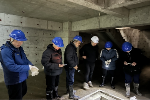 市水利局总工程师张正贤一行检查泵房段隔热层脚手架