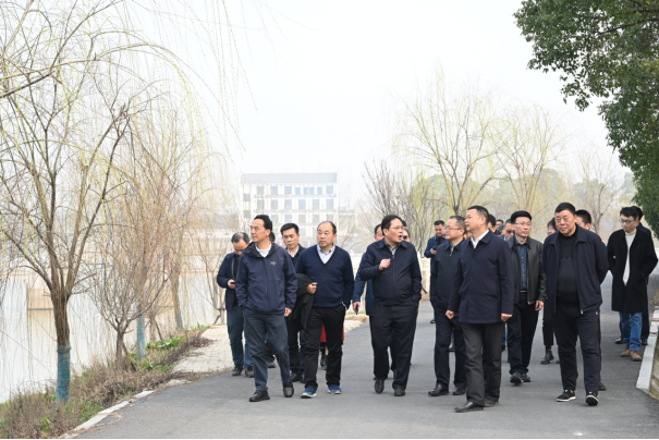 颜学毛一行调研了烂泥湖纪念馆、奎星塔泵站、奎星村“水美湘村”建设项目、清溪村等地,充分肯定了益阳市水文化建设成果。