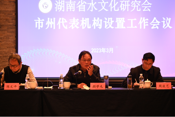 会议通报了2022年省水文化研究会的工作情况,部署2023年的重点工作,介绍市州代表处设置方案及工作制度。颜学毛为益阳代表处授牌,周放鑫接牌并致词。
