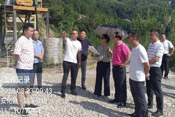 督导组首先实地察看了省生态环保督察披露问题中2处砂场(柘溪镇唐溪砂场、马路镇马路溪2号砂场)的整改情况,随后在安化县水利局召开了生态环境损害赔偿案件办理督导工作座谈会。