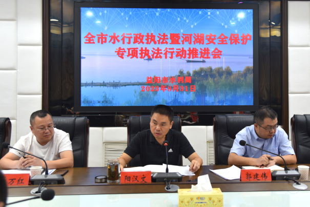 为深入贯彻党的二十大精神、习近平法治思想和习近平总书记关于治水的重要论述精神,全面落实水利高质量发展决策部署和2023年全省水政工作会议精神,总结全市2023年上半年水行政执法工作,安排部署下半年工作,推进全市河湖安全保护专项执法行动等重点工作,8月31日,益阳市水利局组织召开了全市水行政执法暨河湖安全保护专项执法行动推进会议,市水利局相关科室负责人和市水政监察支队全体成员、各县市区水行政主管部门水行政执法分管领导和水政监察大队大队长参加会议。市水利局党组成员、副局长阳汉文出席会议并讲话。