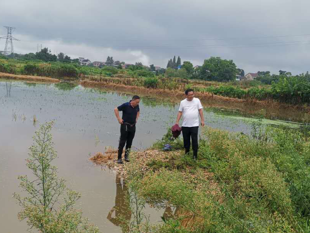 “报告镇防指,黄甲山村大水坝涵管内水声有异响”,接到村民电话,资阳区水利局副局长周建良带领区级技术员火速赶往现场。