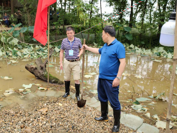 孟长庚在沙头镇永明村荷叶塘现场处险(右一)