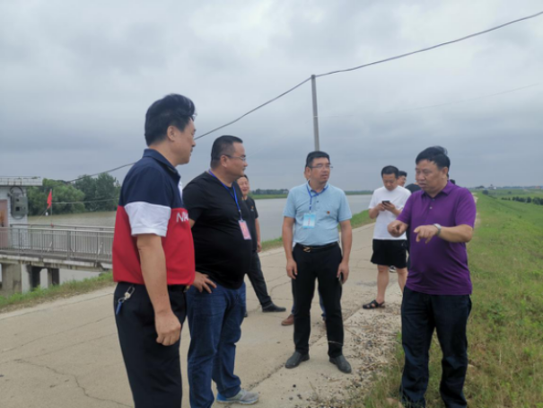 孟长庚在沙头镇晏家岔闸处险现场与市局领导商讨处险方案(右一)