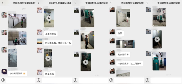 晚上九点多钟,手机微信突然响个不停,打开一看,原来是资阳区排灌站负责人要求各基层站在工作群中打卡值班情况。