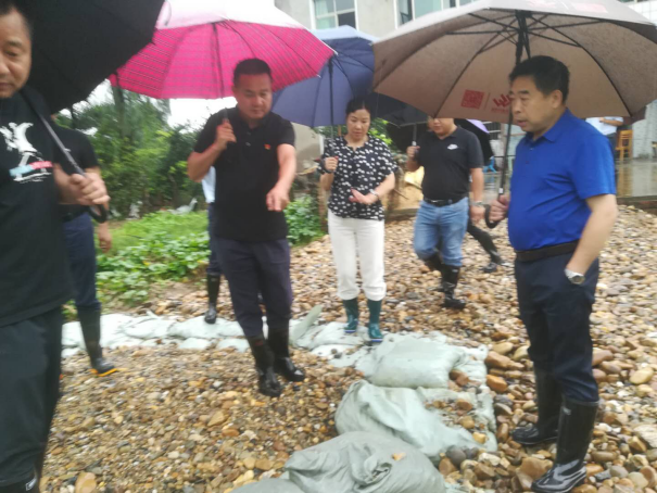7月27日上午,副市长汤瑞祥冒雨来到赫山资江大堤检查防汛工作情况。赫山小河口分指政委、区人大常委会副主任蒋美华及区水利局、兰溪镇政府相关人员陪同检查。