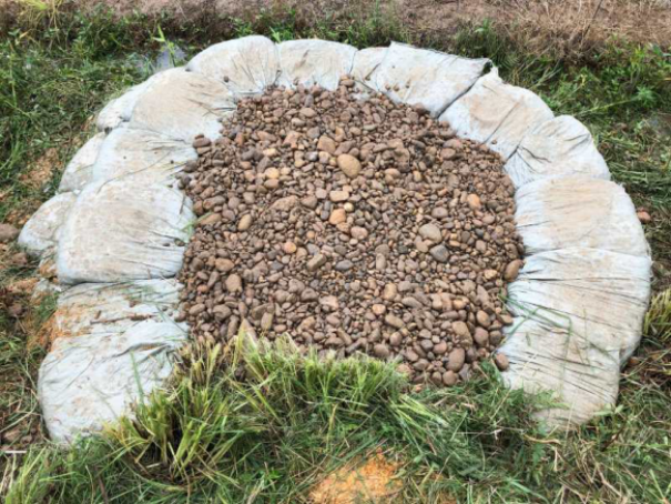 险情发生堤段桩号为8十240,位于资江大堤压浸平台与农田结合部坡腰处。只见在距湘中石油库东边围墙20米、距大堤堤脚约40米处有一直径近10厘米的小型涌水眼,正泛浑水,出水中有少量轻微沙。经技术人员现场分析,认为该小型涌水眼是因长时间降雨,堤身及压浸平台含水增加,所有浸水集中一通道汇流形成。决定采用修筑滤围井处险,计划用黄砂1立方米、卵石3立方米、纤维代80只。经过2个小时的紧张抢险,至当天12时,资江大堤湘中石油库段发现的小型涌水眼险情得以排除。