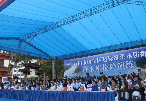 本次演练由益阳市防汛抗旱指挥部和安化县防汛抗旱指挥部联合举办,安化县人武部、县水利局、县应急局、县自然资源局、县城南区管委、县融媒体中心承办,安化县防指相关成员单位和部分群众代表参加演练,益阳市及市辖各区县(市)主要领导、县直相关部门、乡镇、村组干部及当地社区群众1000余人参加观摩。