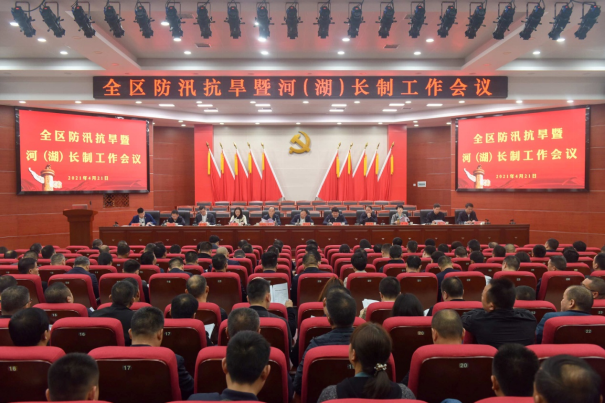 4月21日上午8:30,资阳区防汛抗旱暨河长制工作会议在区政府会议中心召开。会议由区委副书记曾文谦主持,在家的区四大家领导,区直、驻区单位负责人,各乡镇(街道、长春经开区)、全区村(社区)及基层水利管理单位负责人参加了会议。