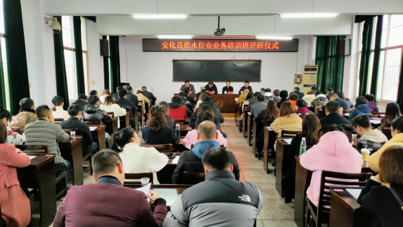 12月13日,安化县供水行业业务培训班在安化县委党校正式开班,县水利局党组书记、局长谢智兴同志出席开班仪式并发表动员讲话。县委党校三级调研员谢跃远,县水利局党组成员、副局长李聪勇出席开班仪式,县城乡供水有限公司支部书记、董事长李益初主持,县城乡供水有限公司“三会一层”领导班子参加开班仪式,新入职员工及各岗位业务骨干共计71人参加培训。