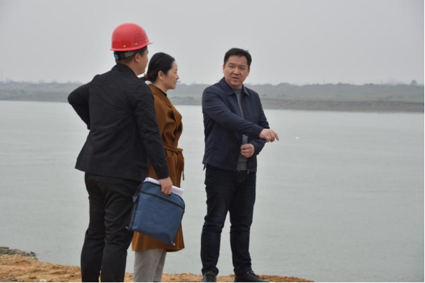 (图一) 水利局局长周宇峰检查沙头镇何家湾应急处险工程施工现场