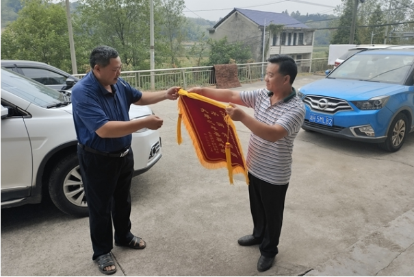图一:桃花江镇花园洞村支书向桃花江灌区东干渠管理所赠送锦旗