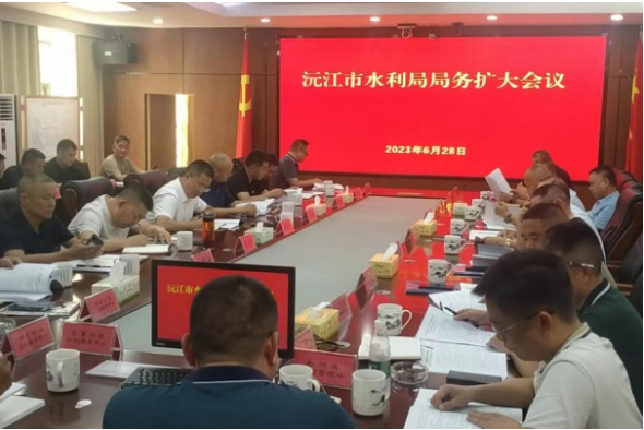6月28日下午,沅江市水利局召开局务扩大会议,局党组书记、局长彭治才主持并讲话,全体班子成员、各镇(街道、中心)水利服务中心主要负责人、局直单位和机关股室主要负责人参会。