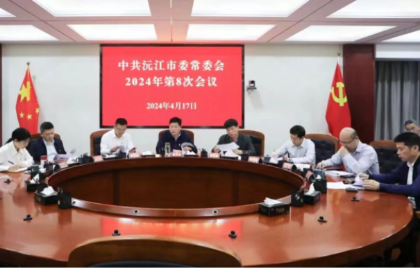 4月17日,沅江市委书记杨智勇主持召开市委常委会2024年第8次会议,传达学习习近平总书记考察湖南重要讲话精神,研究部署2024年防汛抗旱等工作,审议有关工作方案。