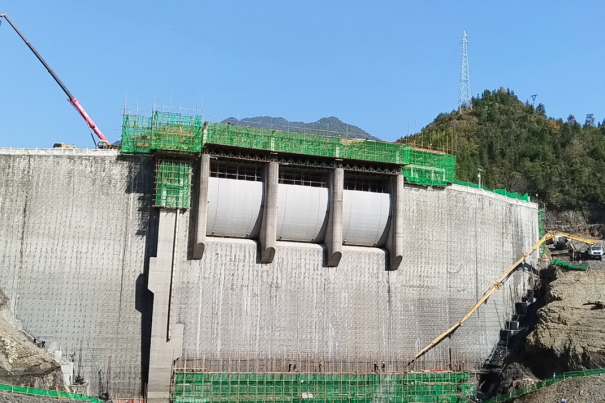 图一:安化县廖家坪水库除险加固工程施工现场 (莫专 摄)