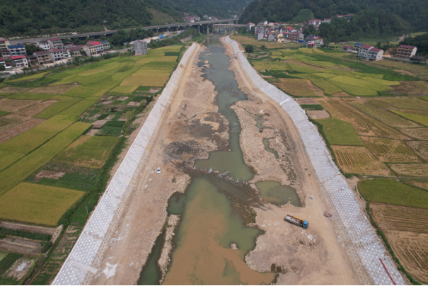 在洢水安化县仙溪镇河段治理工程施工现场,治理后河道干净畅通,岸坡坚固整洁。仙溪镇河段沿线分布有大量农田、房屋等,之前因部分河段为阶地,河道纵坡较大,洪水陡涨陡落,岸坡冲刷严重,存在局部崩塌现象,这不仅对两岸农田安全造成严重影响,甚至严重威胁周边居民的生命财产安全。为消除河岸安全隐患、稳定岸线,安化县水利局积极争取国债资金,治理河长7.73公里,工程主要建设内容包括岸坡护砌9.632公里,河道疏浚0.619公里及新增部分管理设施等内容,项目建成后将保护人口0.6万人,保护耕地0.8万亩。