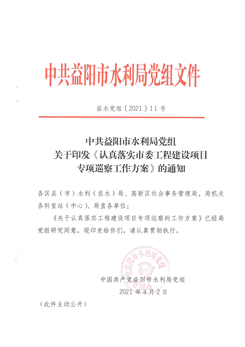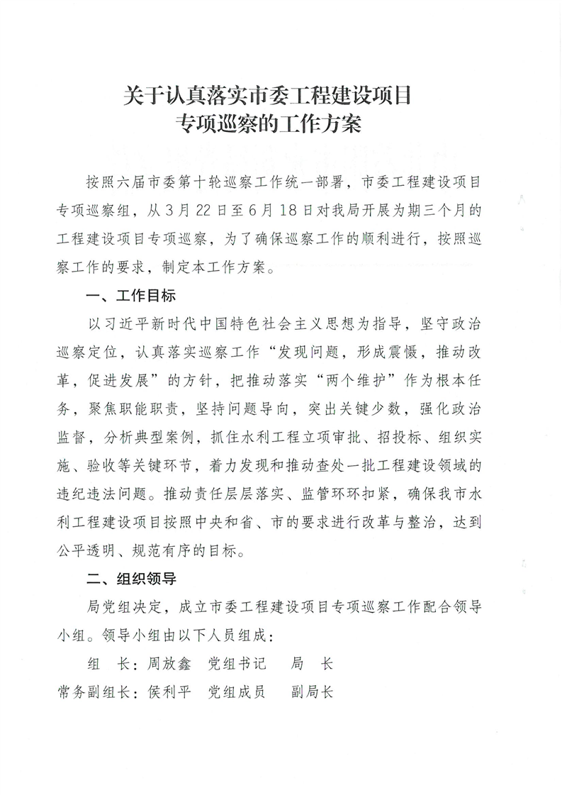 关于《认真落实市委工程建设项目专项巡察工作方案》的通知