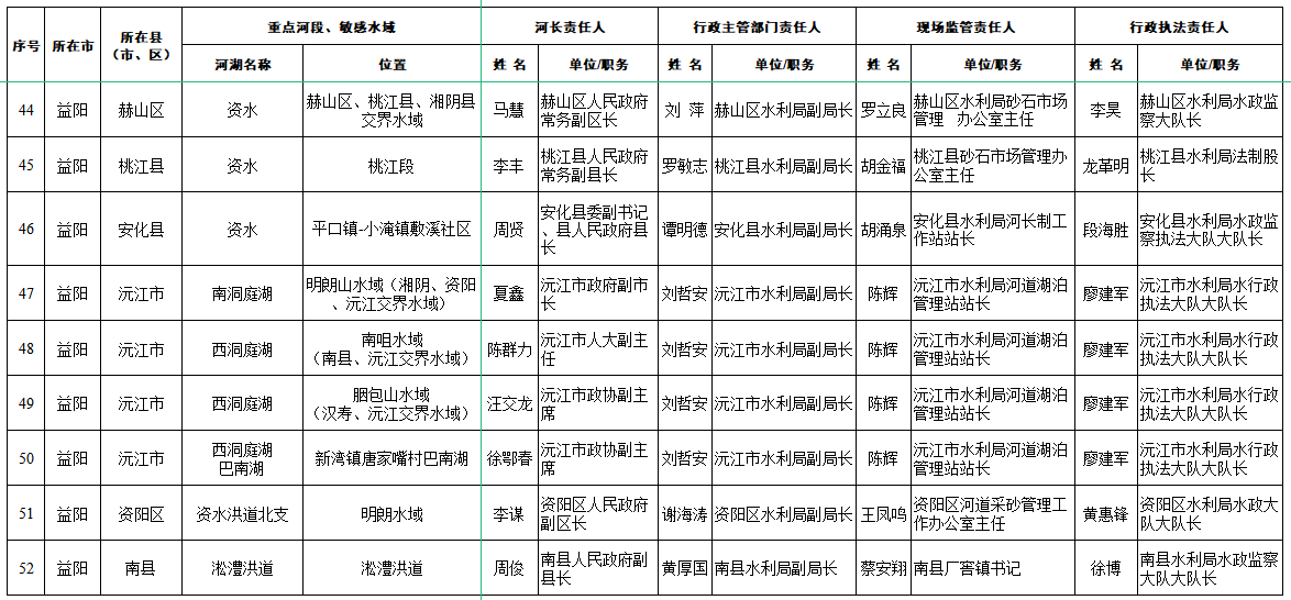 2021年度湖南省重点河段、敏感水域采砂管理责任人名单