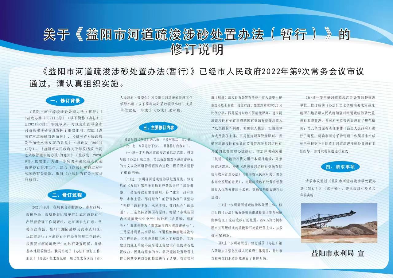 关于《益阳市河道疏浚涉砂处置办法(暂行)》的修订说明