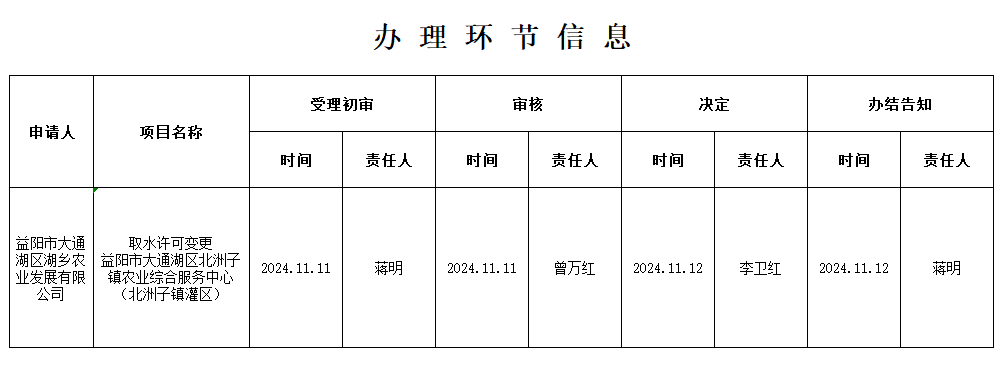 取水许可变更 益阳市大通湖区北洲子镇农业综合服务中心(北洲子镇灌区)