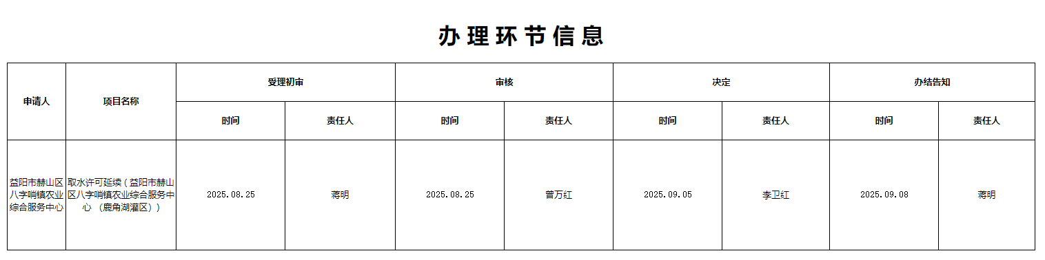 取水许可延续 ( 益阳市赫山区八字哨镇农业综合服务中心 (鹿角湖灌区))