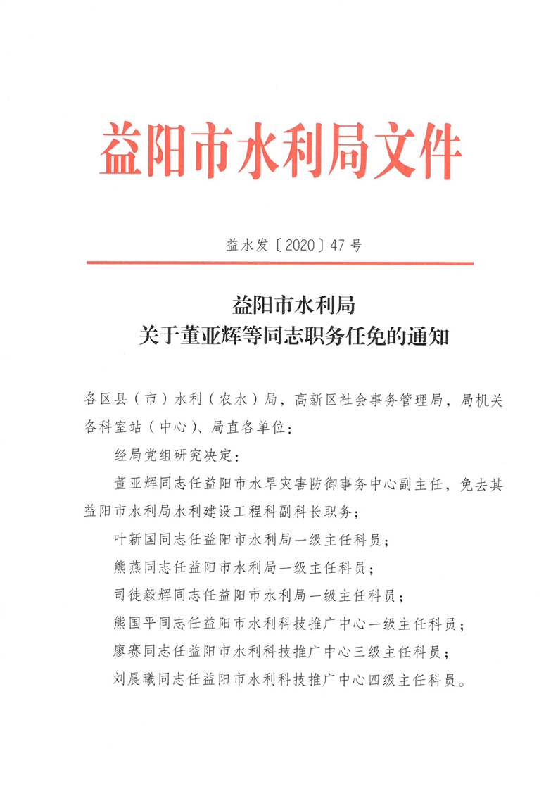 益阳市水利局关于董亚辉等同志职务任免的通知