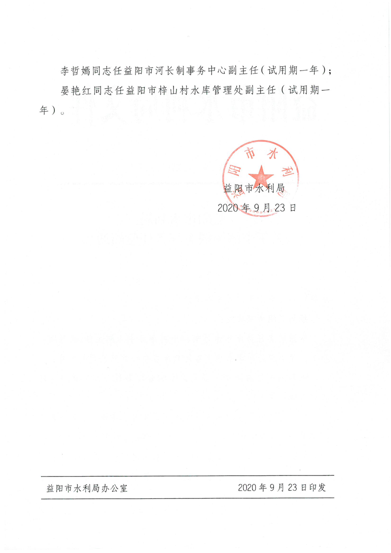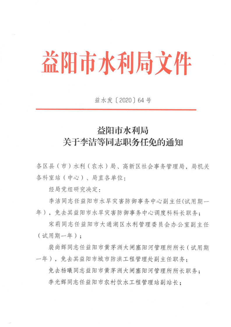 益阳市水利局关于李洁等同志职务任免的通知
