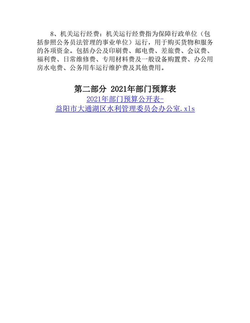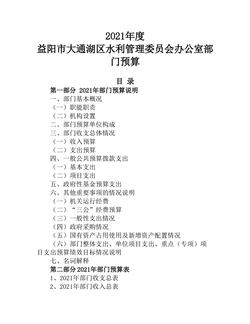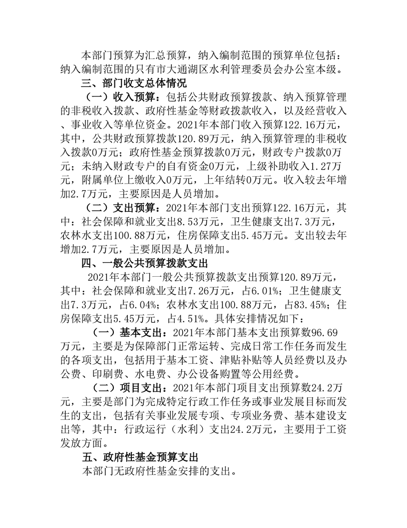 益阳市大通湖区水利管理委员会办公室2021年部门预算公开说明