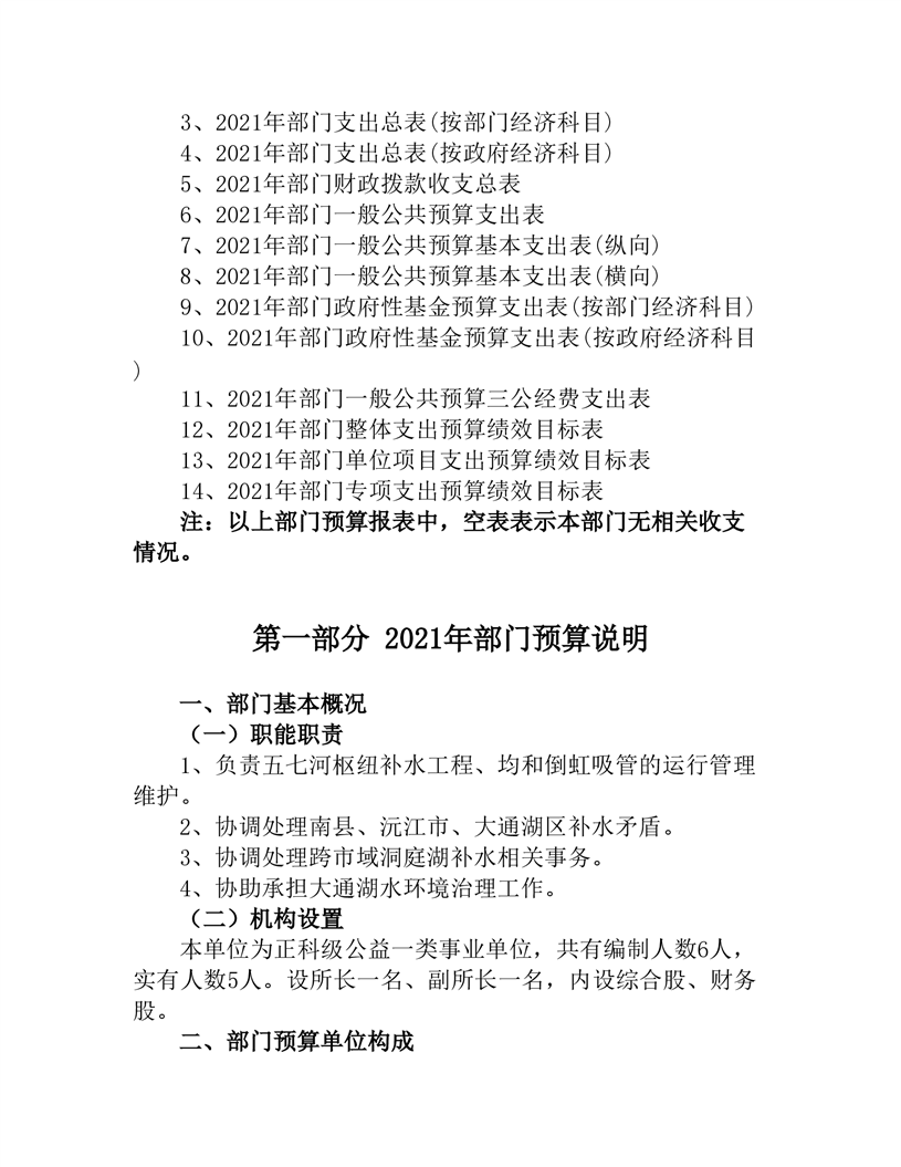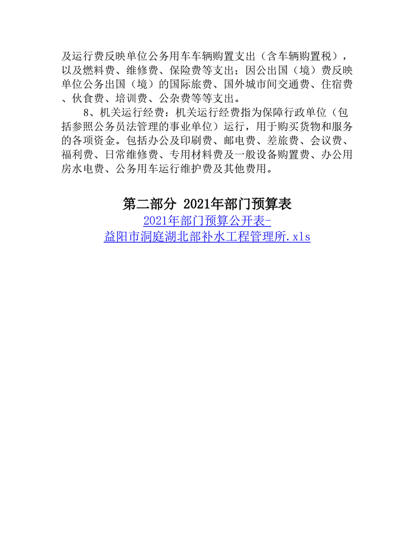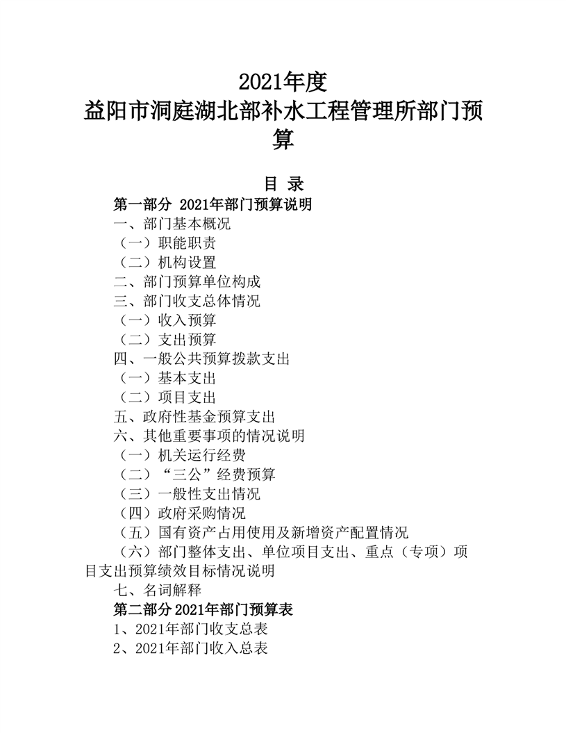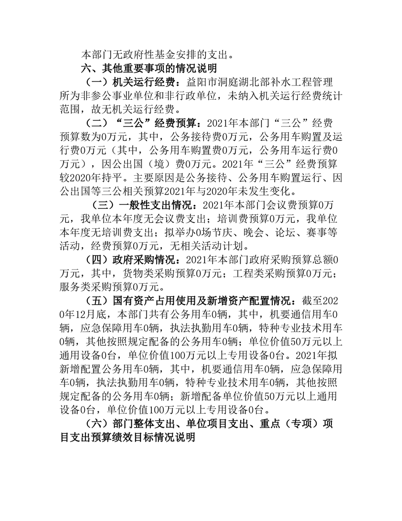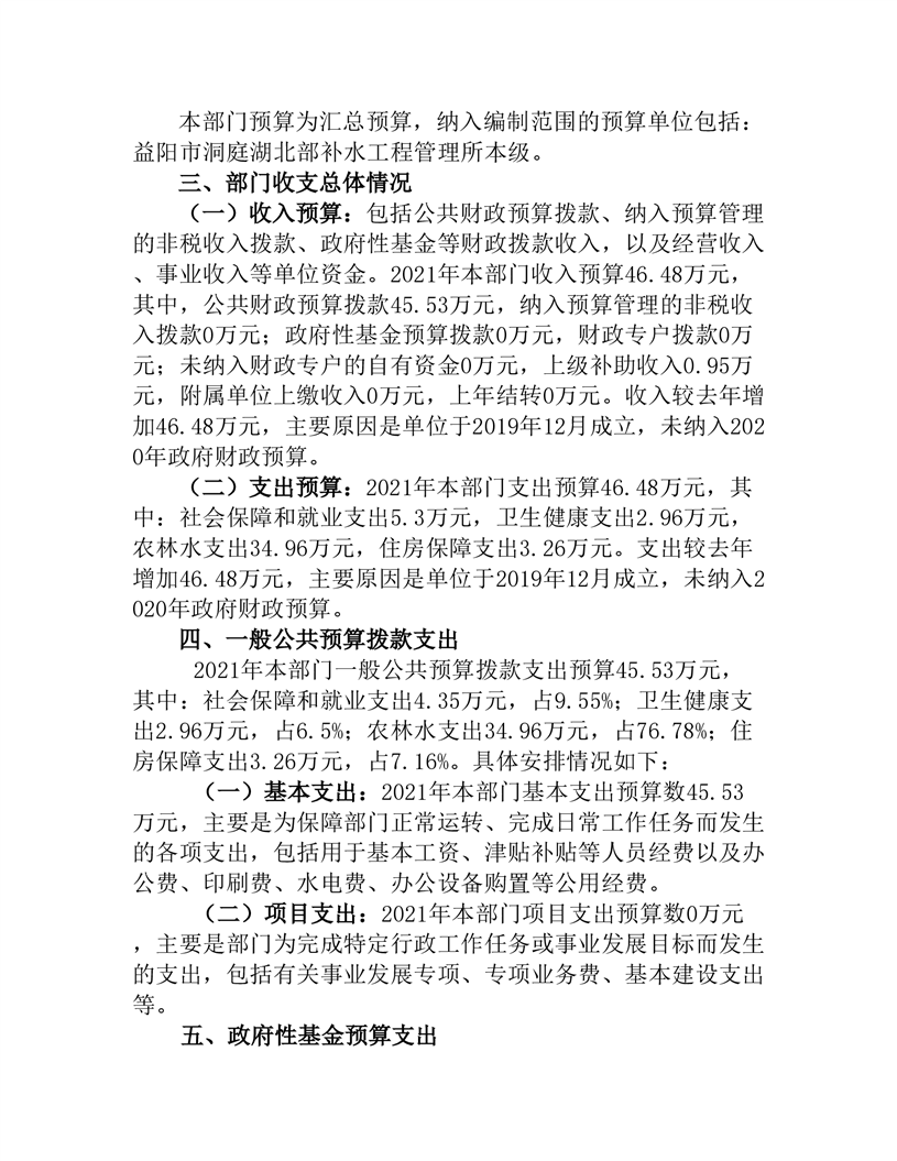 益阳市洞庭湖北部补水工程管理所2021年部门预算公开说明